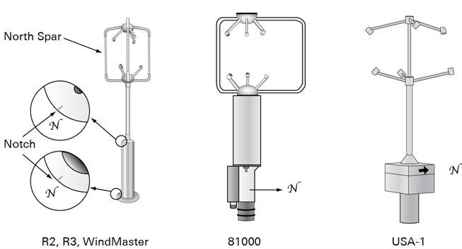 - On Metek’s USA-1, by a black arrow on the electronic box or by a north bar on the sensor head;