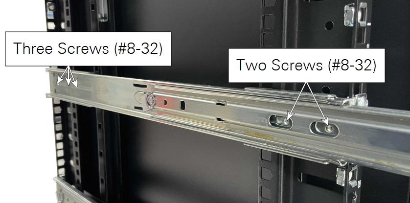 Racks vary, and yours may be different from what is described here. Choose the hardware that is compatible with your rack. The analyzer and the rails that support it should be secured at the front and back.