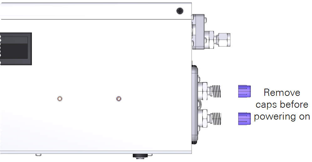 Caution: Remove the protective caps from the air inlet and outlet before powering on the instrument. The instrument will fail to initialize if the caps are in place. Use the caps when storing or shipping the instrument.